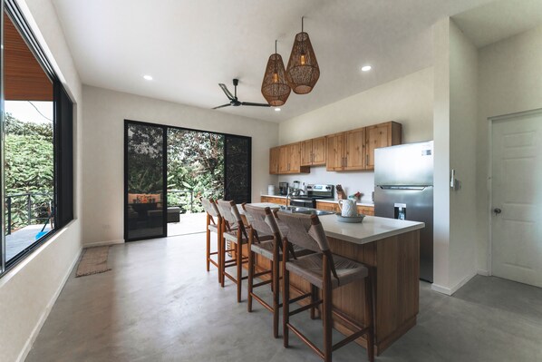 Guests will enjoy this spacious eco-friendly house where country and jungle meet. There is ample natural light, a large patio overlooking a field of horses, listening to parakeets, howler monkeys, and a stunning sunset unlike any other. Newly furnished with hand-crafted pieces, comfortable beds, and amenities for a peaceful and relaxing stay.