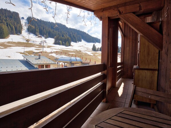 Apartment of 32sqm + 11 sqm at the foot of the Mont Rond slopes, three rooms for six people, on the third floor with a south-east facing offering a superb view of the slopes.