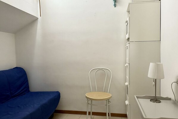 Description: raised ground floor of a building. Entrance onto bright living room with table and chairs - equipped kitchenette with the addition of microwave oven and washing machine - master bedroom with double bed - second bedroom with double sofa bed - bathroom with shower cubicle.