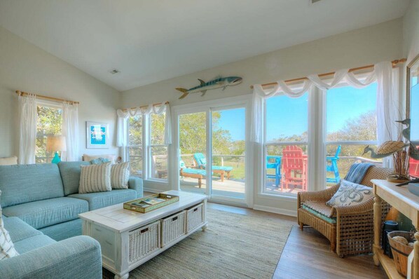 Tucked away on a corner lot near the beach, 302 37TH PLACE E offers stunning marsh and Davis Canal views. Enjoy the outdoors with kayaks, crab traps, and bikes at your disposal or unwind by the fire pit and outdoor bar. This home features a fully equipped kitchen, washer/dryer, covered porch with charcoal grill and TVs in every room.