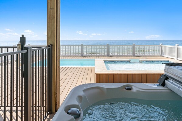 Outdoor spa tub - Arches: Oceanfront retreat in Oak Island, 4BR, 3BA, sleeps 12, ideal for families. (Oak Island)