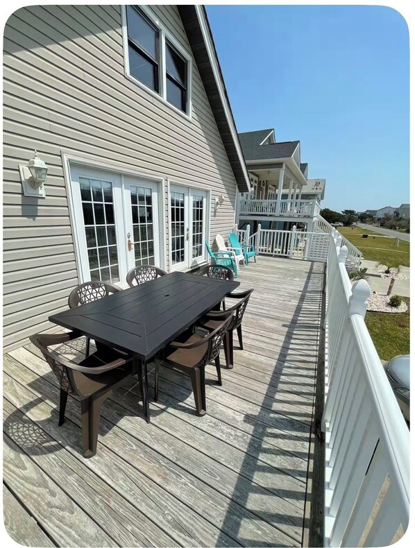 Stay comfortably in Oak Island at this 3-bedroom house. The bedrooms include a king bed, three full beds, and a twin bed, perfect for families or groups. Guests enjoy a full bathroom with an additional glorious outdoor enclosed shower. Towels included. The house keeps a cool atmosphere with air conditioning and heating, making it a fantastic retreat no matter the season. Relax in a space designed for comfort and ease. Experience what Oak Island has to offer with a stay at our amazing house where memories are made!