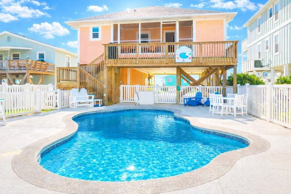 Find serenity at Absolute Serenity, a well-maintained beach cottage with ocean views and warm breezes. Slowly rock in the outdoor swing on the covered front porch or unwind by the private pool. With an open floor plan, cozy interior, and soothing colors this home offers a perfect space for everyone to be together.