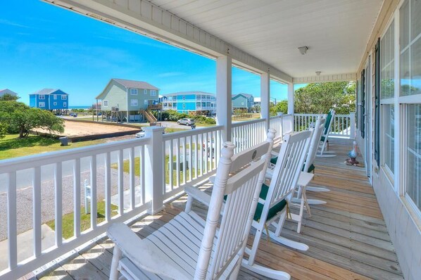 Terrace/patio - Stay at Reel Estate, a spacious 3-bedroom home in Oak Island, perfect for beach lovers! (Oak Island)