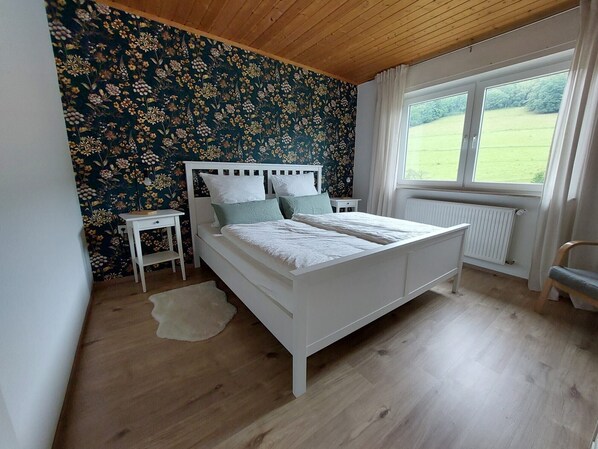 Apartment Ferienwohnung Zwei in Oberzent offers 100 sqm of space for up to 4 guests. You have 2 bedrooms and 1 bathroom available during your stay. A foldable guest bed for an additional person is provided at no extra cost. The apartment features a fully-equipped kitchen for your private use. Amenities include WiFi, TV, video on demand, and a grill. A complimentary children's package with baby bed, highchair, potty, and step stool can be provided upon request.