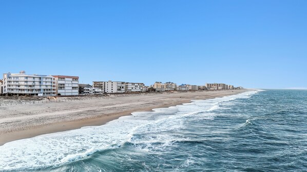 Located in North Ocean City, this beach block condo is just a 1-minute walk to the beach, a 5-minute walk to Northside Park, and close to Starbucks, Chipotle, Green Turtle, and Food Lion. Many bars and restaurants are within walking distance, offering endless dining options. You’ll have your own designated parking spot, plus additional parking on both sides of the street, a rare convenience in Ocean City.