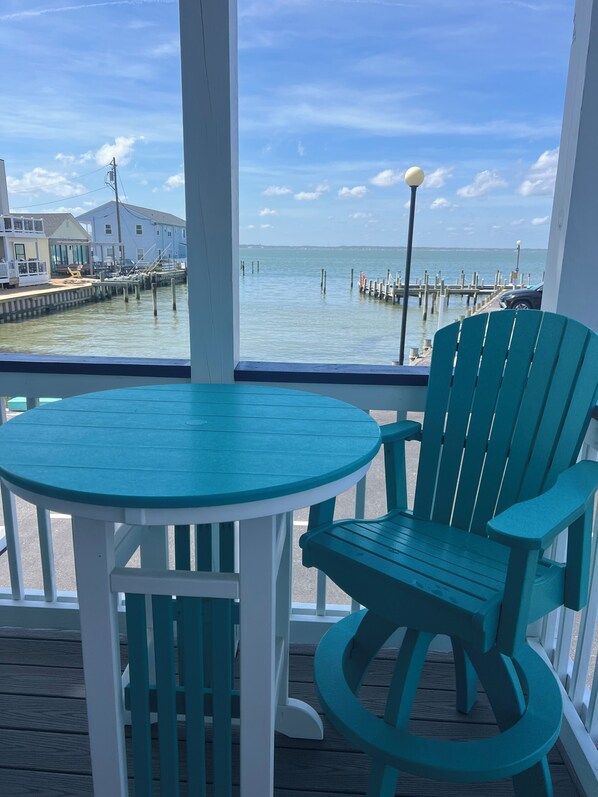 Ocean City is waiting for you at this 1-bedroom condo. This adorable property features 1 cozy queen bed, AC, WiFi, and a gorgeous view of the Bay. Guests can relax in the tranquil atmosphere and take in the amazing surroundings. This very popular waterfront building located in mid-town Ocean City which provides a fully equipped 1st floor, 1 bedroom, (MAX 2 people) and 1 bath unit. This unit has brand new appliances, stove, stackable washer/dryer, refrigerator, and bed. We have fresh paint, new furniture throughout, new toilet, secure keyless entry, new blinds, & new windows. In August of 2023, the entire exterior was remodeled, all new decking, railing, stair towers, siding and a drip system in the ceiling so you can enjoy the porch even when it’s raining. Grab your coffee and watch the boats from the porch overlooking the bay, and watch the sun go down right from your porch. We even have a resident that will sometimes play the bagpipes as the sun is setting. No need to find parking at the beach, grab your towel, and sunscreen and walk across Coastal Highway to the beach. The Roland E. Powell Convention Center, is next door which hosts a variety of events year-round. You are within walking distance to many popular hot spots in Ocean City, Coconuts Beach Bar & Grill, OC Wasabi, a few blocks from Jolly Rogers Amusement Park, Secrets Bar/Nightclub, and too many bars and restaurants to list. Private boat slip and launch ramp is available to add to your rental for an additional $200.00 per stay, prior approval and registration required. Our condo amenities include: