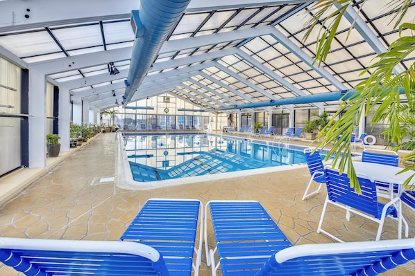 In an oceanfront building, The Capri unit 412 offers a relaxing retreat with tasteful decor and modern comforts like central air conditioning. Unwind in the indoor pool, challenge someone to a game in the game room or serve up some fun on the tennis courts.