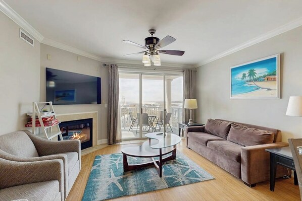 Imagine waking up to the rising sun sparkling on the water and the sound of seagulls calling in the distance–yes, you're on vacation! Belmont Towers 608 is a two-bedroom, two-bathroom condo that's anything but ordinary. Located on the Southside and overlooking the pool, the scene is remarkable! The balcony allows views that stretch all the way from the beach to the Bay and nearby Assateague Island. You'll find many high-end finishes throughout, including three TVs, two DVDs, a gas fireplace, plush furnishings, and a beautiful fully-equipped kitchen with upscale appliances and granite countertops.