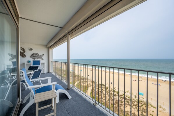 Book this comfortably appointed, oceanfront condo at English Towers and forget about day to day life for awhile. Once settled in, the options are simple: head straight to the beach and put your toes in the sand, take a few steps onto your balcony and immerse yourself in the sights and sounds of the waves, or recline and take a breather in your air-conditioned living room. This condo has three bedrooms and two baths, a full kitchen, separate dining area for family meal time and unimpeded views of the ocean. English Towers has much sought after amenities including an elevator, fitness room, and an indoor pool (closed Jan and Feb). The building is conveniently located on 100th street near great restaurants, the library, and the ACME shopping center. Accommodating up to eight guests, the bed sizes include a king in the primary bedroom, a queen in bedroom 2, a queen and single in bedroom 3, and a queen sleep sofa in the living room. Property rents Saturday-Saturday in season and any 3 nights off season.