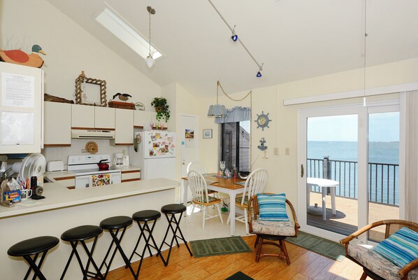 Beautiful panoramic view of north & south Ocean City from this 3rd floor bayfront unit. Sitting on the front balcony you can enjoy the sunrise over south Ocean City and from the large rear balcony you can enjoy the beautiful sunset over the bay and route 90 bridge, also enjoy watching parasailing, sport fishing boats and run abouts. Kids of all ages will love the beautiful outdoor pool. Brightly colored living area with sofa bed, stereo, 4 DVD players, books and games for everyone's enjoyment. FourTVs with Roku devices to stream your favorite channels. Upgraded appliances in well-lit kitchen with skylights. Attached bar with stools, kitchen is well supplied, including blender, coffee maker, ice tea maker, toaster, can opener, microwave, and dishwasher. New central air system in 2024. Washer/Dryer in unit. Hallway closet offers beach chairs, and some beach toys too. Spacious master bedroom has a queen size bed with private adjoining bathroom. There is a balcony off of the master bedroom, facing south. Second bedroom with its beachy decorations offers queen-size bed with TV. The third bedroom is an open loft area, accessed by a spiral staircase, with bunks for the kids and TV/DVD player with game ports. Two boom-boxes kept in the condo for your use. This unit is just a few blocks from Jolly Rogers' amusement park. Market/Deli is one block away. This is a well-maintained and nicely decorated condo, you won't be disappointed if you chose this unit for your next vacation. Occupancy maximum 8 persons; non smoking only, please. 2014 New central Air, new sliding doors, new hot water heater NO BOAT DOCK. Non-smoking. No pets, please. Smoking is not allowed in the building or on the property.