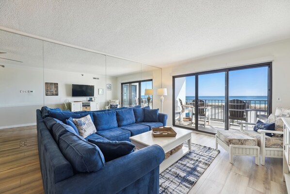 Oceanfront living at its finest, Plaza 104 offers a beautifully renovated condo with an open floor plan and stunning ocean views from the balcony. Enjoy central air, a fully equipped kitchen, washer & dryer, and three flat-screen TVs. As part of The Plaza community you have access to two dry-heat saunas, an indoor heated pool and outdoor pools plus 24-hour security.