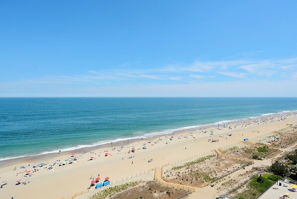 PLAZA 1311 9800 Coastal Hwy. Saturday to Saturday NON-SMOKING - NO PETS Direct Oceanfront 2 bedroom, 2 bath with open den unit. The ocean front balcony is accessed from the living room and master bedroom. Cottage style decor in this condo includes beautiful six panel doors throughout, a huge flat screen TV in the living room for your family movie night along with a new area rug in the living room. Nice drapes across the living room slider. The master bedroom has a beautiful four poster queen bed and serves as a perfect sanctuary when a little quiet time is needed! Black out curtains in the master keeps the sunrise from waking you from your slumber. New mattresses have been installed in the 2nd bedroom for your sleeping comfort. The condo includes central air, lovely updated and well equipped kitchen with white cabinets, a dishwasher, microwave, full size washer and dryer, 4 TVs, 4 DVD players, 2 VCRs and Cable. Everything a vacationer needs! Occupancy 8. Ceramic floors throughout for easy clean up. Wi-Fi is FREE, paid for by owner! FREE BEACH LOCKER!
