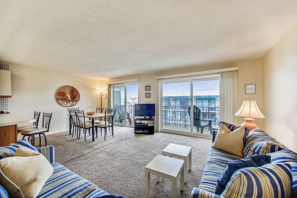 Sun Chaser is located on the 36th ocean block: It is a 2 bedroom, 2 bath. Very clean, well decorated, and well stocked. Close to shopping, restaurants, a water park and the Boardwalk. There is a side view of the ocean from the balcony and a short walk to the beach. No Smoking allowed in the unit or on the Balcony. NON-SMOKING Building.