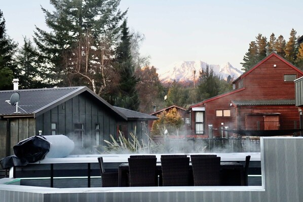 At night you will be surrounded with beautiful effect lighting. You will feel like you’re in an luxury resort as you completely relax in the spa looking out onto the beautiful snow capped Mount Ruapehu.