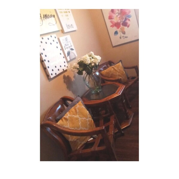 Hardwood floors throughout, carpet in rooms, & tile in bathroom, ceiling fans in bedrooms & dinning room, long lasting hot water which makes your showers/bath more relaxing, washer & dryer on site free washing/drying (credit) when downloading app, security camera's on site, internet access