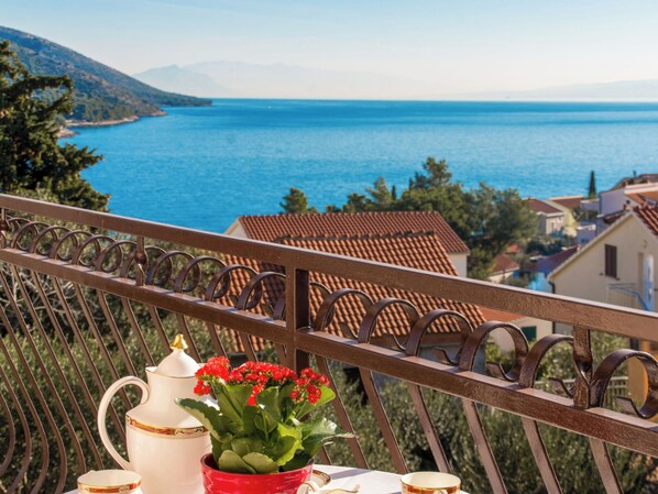 Okrug Gornji (Čiovo) 6 km from Trogir: 2-family house "Ana". 1.4 km from the centre of Okrug Gornji, 360 m from the sea, 360 m from the beach, in a cul-de-sac. Private: terrace (35 m2), garden furniture, barbecue house. In the house: internet access, washing machine (for shared use). Parking at the house. Shop 750 m, restaurant 240 m, bus stop 1.2 km, pebble beach 360 m. Please note: airfield 8.5 km from the property. 3-room apartment 80 m2 on 1st floor. Living/dining room with satellite TV and air conditioning. Exit to the balcony. 1 room with 1 double bed (2 x 80 cm, length 200 cm). 1 room with 1 double bed (2 x 80 cm, length 200 cm), satellite TV. Exit to the balcony. Open kitchen (oven, dishwasher, 4 induction hot plates, toaster, kettle, microwave, freezer, electric coffee machine, cooking island). Exit to the balcony. Shower/WC. Floor heating. Balcony 19 m2. Balcony furniture. Beautiful view of the sea. Facilities: mosquito net, hair dryer. Internet (WiFi, free). Please note: smoke alarm.