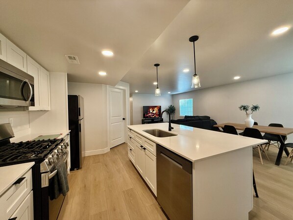 The living room has a Sectional to entertain family and friends, opens to the Dining and Kitchen!*Imagine been with your family and friends, spending time together in this open floor plan! The Living Room has a Big Sectional to entertain. 2 fridges! Washer and dryer! 65" Smart TV!