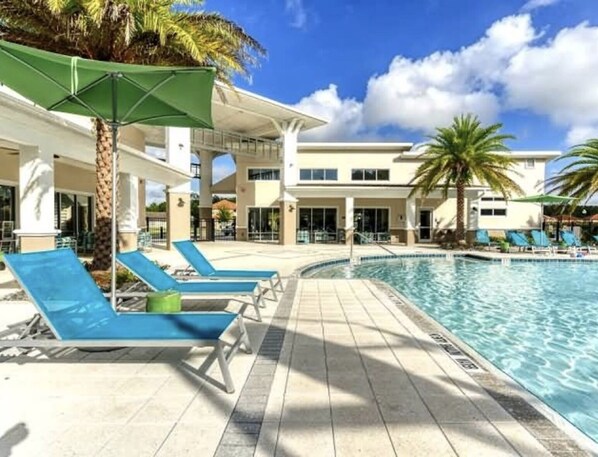 Outdoor pool, a heated pool - 15BR/17BA Mansion l EV Charger! Theater! Private Pool! Near Disney! Gym! (Kissimmee)