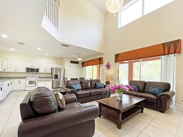 In the heart of Central Florida, Golden Sunset resort villa offers a serene retreat within the gated Terra Verde Resort. Enjoy spacious living areas, a recently renovated kitchen with granite countertops and stainless steel appliances, plus six bedrooms with multiple amenities for all to enjoy. With high-speed wifi and cable TV included along with poolside relaxation on your private deck overlooking peaceful conservation land.