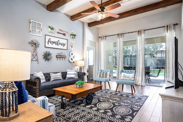 Farmhouse inspired pool home with themed rooms @ Windsor Hills-5 mins to Disney
