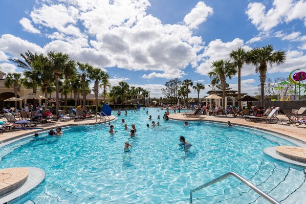 Some of the magnificent features of this guard-gated community include a luxurious water park pool and clubhouse with fountains, dueling slides park, and a hot tub lagoon spa. The amazing clubhouse over-looking the pool has a game room, HD movie theater, state of the art fitness center, and has billiards tables, and a video game area, a sundry shop, fitness room with top of the line fitness equipment, high definition surround sound movie theater, and other outdoor recreational activities such as outdoor poolside ping pong, all surrounding the heated Double Olympic Size Swimming Pool with water-slide! The clubhouse and lagoon hot tub area are set next to a beautiful wetlands area, amidst lush tropical landscaping throughout the whole resort. Play outdoor ping pong next to the amazing resort pool, or play golf at one of the many Orlando championship courses, we're right next door to Mystic Dunes! (#2 rated course in Orlando area).