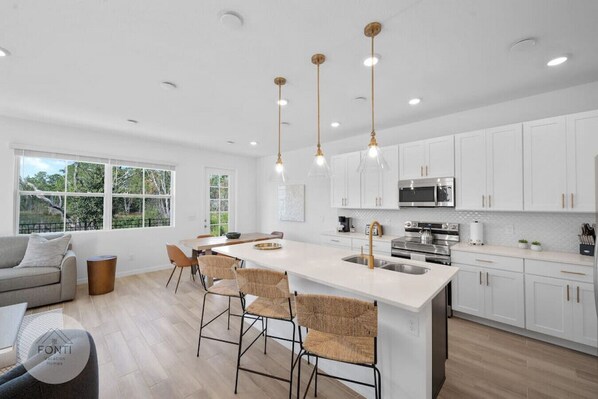 Fridge, microwave, oven, stovetop - 1052 3BR Luxury Resort House by Disney Orlando (Davenport)