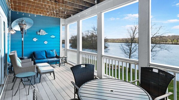Welcome to Float on InnPelican's Landing • Riverfront Townhome • Heritage Harbor Marina Resort • Managed by Harbor Inn Vacation RentalsTucked right along the peaceful shoreline of the Illinois River, Float on Inn is your private, three-story riverfront retreat designed for relaxation, reflection, and reconnecting. With stunning views from nearly every room and modern comforts throughout, this 2-bedroom, 2.5-bathroom townhome offers an exceptional escape—perfect for extended stays.Riverside Living, Elevated:From morning coffee on the balcony to golden hour wine by the fire, Float on Inn brings you as close to the river as you can get—without ever leaving home. With cozy spaces spread across three floors, there’s room for quiet mornings, afternoon adventures, and memorable nights.Home Features:✔ 2 bedrooms | 2.5 bathrooms | 3-story layout✔ Waterfront views from multiple balconies✔ Minimum 14-night stay required✔ Smoke-free and pet-free for your comfortInside the Home:• Main Living Level (Second Floor): Open-concept living, dining, and kitchen area with gas fireplace, flat-screen TV, and private balcony with river views• Kitchen: Fully equipped with modern appliances, ample counter space, and everything needed to cook and entertain• Top Floor: Two inviting bedrooms, each with its own ensuite bathroom and balcony access• Entry Level (Ground Floor): Bonus living area—perfect as a cozy den, quiet reading nook, or second lounge spaceParking:Parking is available in the designated area in front of the home.Perks & Amenities:✔ Two balconies with water views✔ Full kitchen with everything needed for long stays✔ In-home laundry for convenience✔ Walking access to the marina, pool, pickleball courts, and dining✔ Minutes from Starved Rock State Park and downtown OttawaInteraction with Guests:We’re so glad you’re here! Our local team is available from 9 a.m. – 5 p.m. every day to help with anything you need—from local recs to making your stay seamless. Use the messaging system for non-urgent needs—we’re nearby and always happy to help. #prioritiesHouse Rules:• Quiet Hours: 10 p.m. – 7 a.m.• No smoking indoors or on the property ($300 fine)• No pets allowed, including service animals, due to owner sensitivities ($300 fine)• Minimum 14-night stay—no exceptionsReady for Adventure?You’re never far from fun. Swim, kayak, hike, bike, zipline, or simply wander the local shops and taste your way through Ottawa’s wine bars, craft beer spots, and farm-to-table dining. Whether you’re staying for two weeks or two months, there’s always something new to explore.Float on Inn is professionally managed by Harbor Inn Vacation Rentals, your locally owned and operated hospitality team based right here at Heritage Harbor.