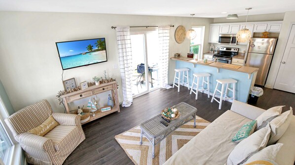 Nestled in Cottages of Herons Landing Neighborhood, This Must be the Place offers a cozy retreat for family weekends. Its 'Beachy' decor adorns every room and is within walking distance to the marina or nearby trails. The cottage features a fully-equipped kitchen, large flat screen TV with cable, second level deck for stargazing and front porch seating perfect for relaxation.