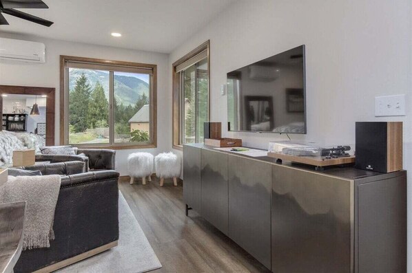 Gather 'round to watch the latest TV show, listen to your favorite records, gaze at the scenic surroundings, and much more in the heart of the modern open floor plan living area decorated with numerous unique details that tell the story of the surrounding area and its rich past.