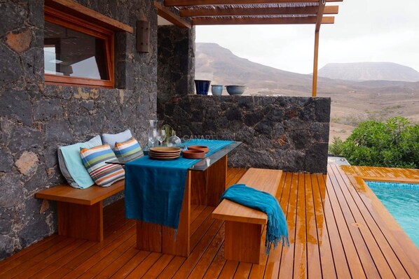 Nature sneaks through the large windows of this villa located in the nearby hamlet of Pajara to the south of Fuerteventura.