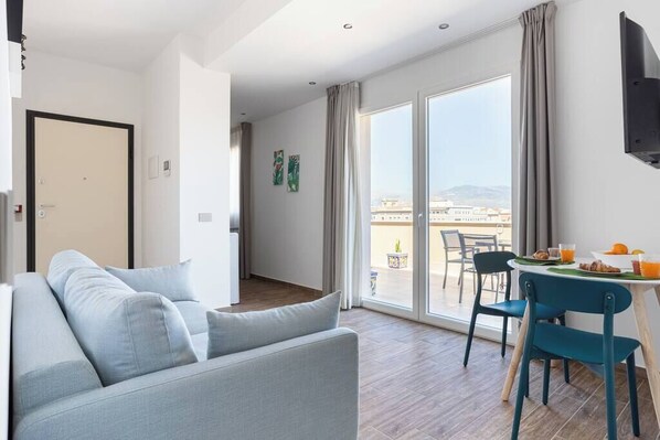 A fully furnished apartment suite located in the heart of Palermo s historic Old Town. The Loft Panorama Apartment impresses with its large terrace. It comprises a double bedroom, living room with sofa bed, a kitchen and a bathroom with shower, this stylish accommodation comes equipped every modern comforts for the perfect stay. You ll find air conditioning and central heating, plus free wi fi throughout. A smart TV will keep you connected and a washing machine lets you travel light. You ll find a hairdryer in the bathroom, and fresh linen, a welcome kit and a all the options of a fitted kitchen will always be at your disposal. Our guests have rated the balcony as their favourite element of this accommodation, loving the chance to enjoy the warm weather while taking in a panoramic view over a fabulous swathe of this historic city.