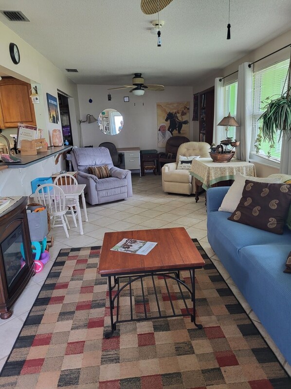 Located in a quiet neighborhood, this cozy vacation rental offers a spacious Large Florida Room ideal for family gatherings. Unwind with coffee and tea in the comfort of your own home away from home or enjoy some fresh air in the large fenced back yard, perfect for pets and children to play safely.