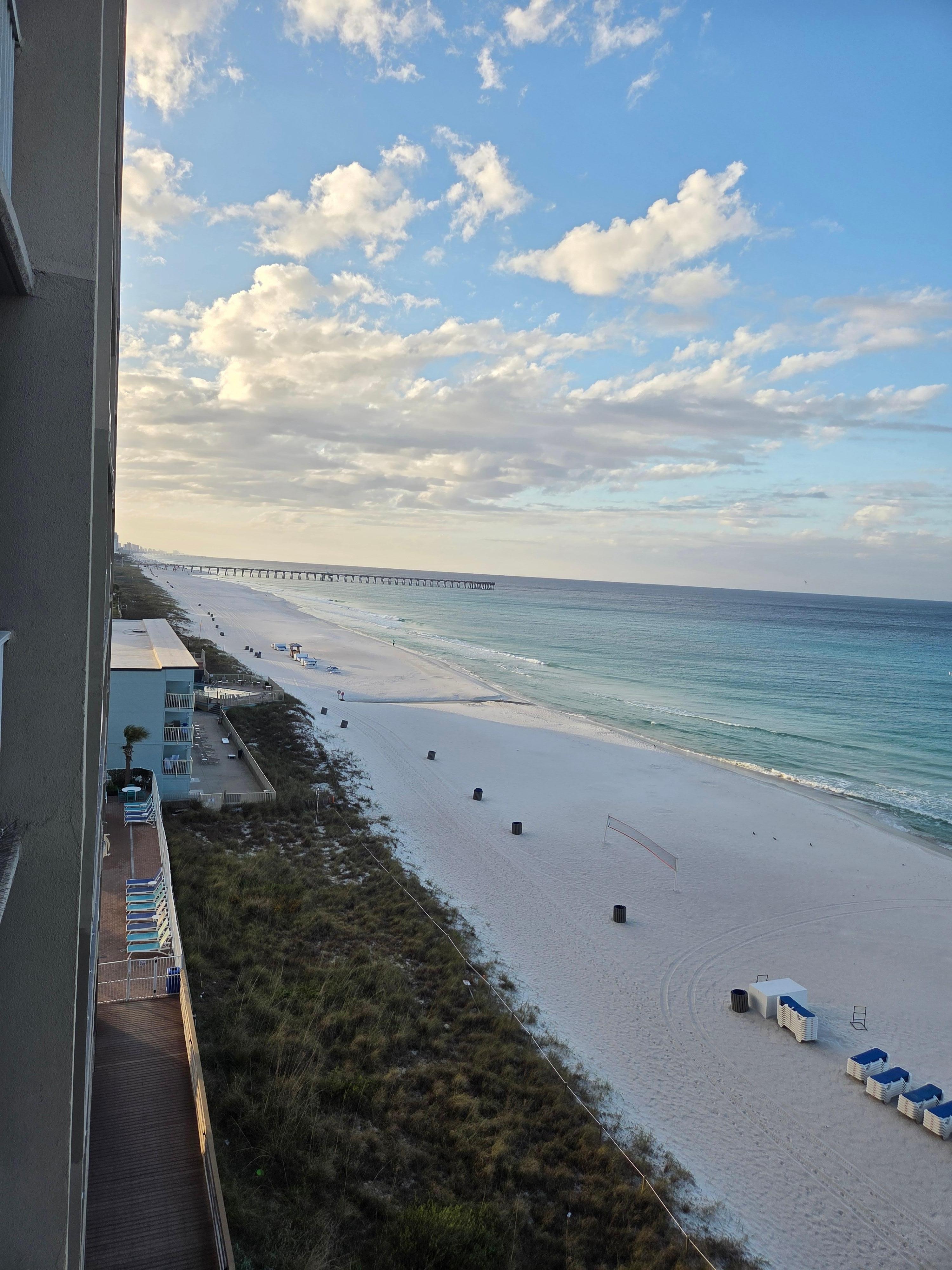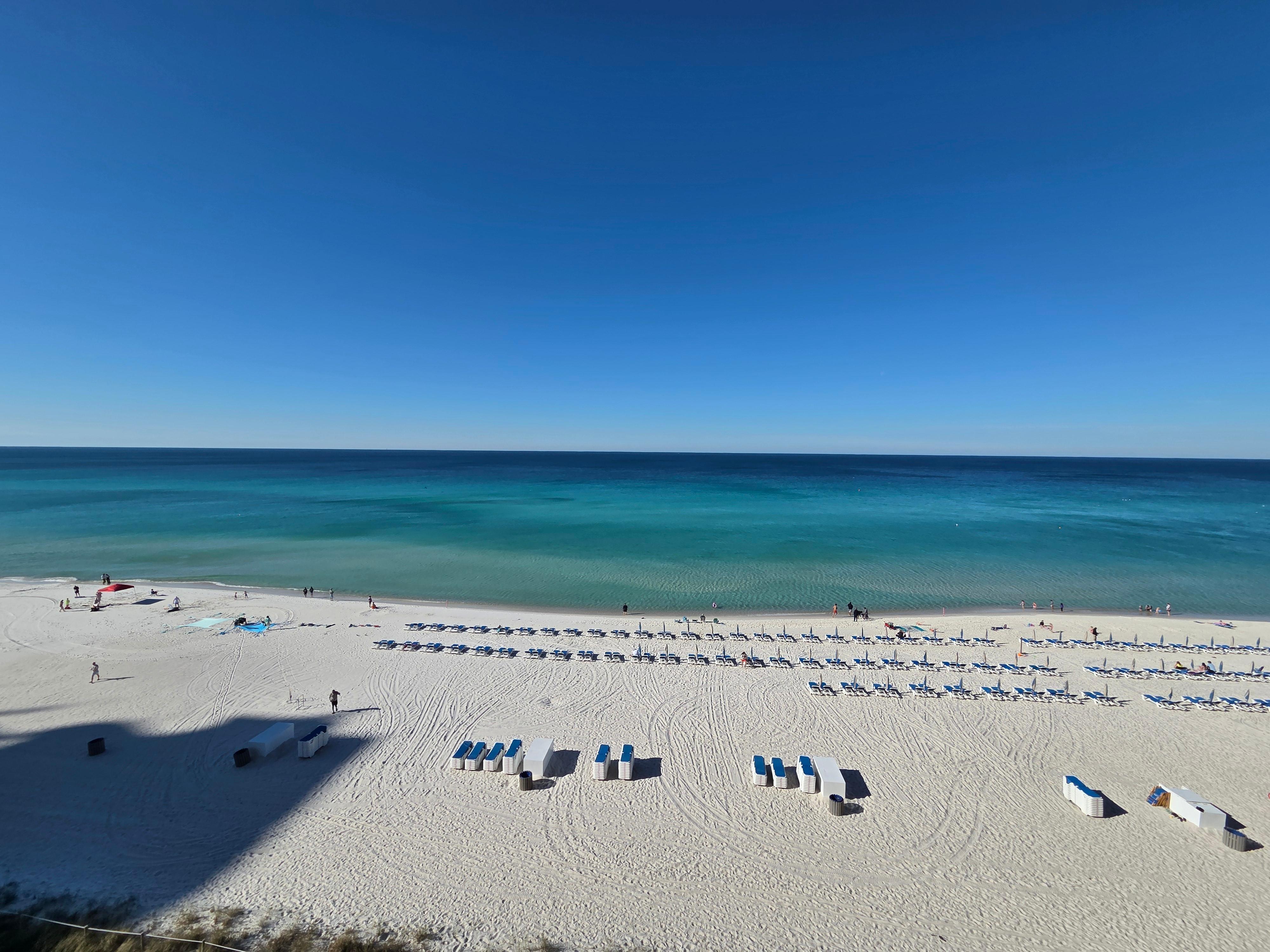 Make memories at this Beautiful Beach Front Condo. I've just completed major renovations including new LVP floors, new kitchen cabinets and completely remodeled guest bath. Perfect balcony to take those sunset photos. You will love the .6 mile walk to Pier Park with lots of shopping, restaurants and entertainment. Easy walk to Aaron Bessant Park, Wynn Dixie and CVS pharmacy. Frank Brown Park and Conservation Park nearby. Easy access for handicapped guests with lower platform bed, grab bars in bathrooms and 34" wide doorways and a new 3'x5' tile shower with fold-down bench. Very desirable low floor. Lots of amenities including 2 outdoor pools with hot tubs, indoor heated pool, 2 Roman Spas, sauna and steam rooms, gym, theater, game room, restaurant, convenience store with Starbucks, Tiki Bar by pool, and grill area. The newly renovated, fully equipped kitchen boasts granite counter tops and stainless steel appliances and also features new cookware and dishes, drip coffee pot as well as a Keurig, blender, toaster, slow cooker, instapot, and a new Power XL Combo Air Fryer 12 in 1. Washer and Dryer in unit. All brand new mattresses! Master bedroom King, Second Master Bedroom Queen, Twin sized bunk beds, and Queen sized sleeper sofa in the living room.
