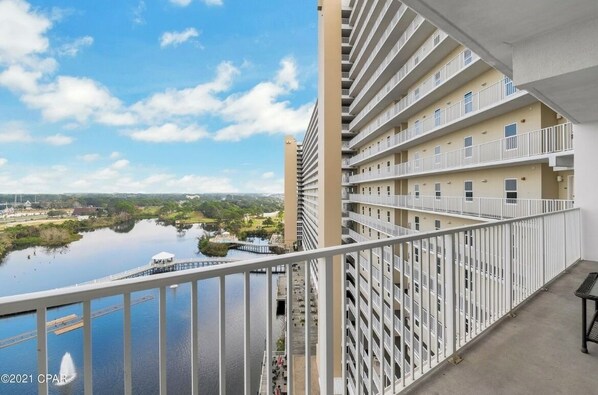 Laketown Wharf is the largest and newest condo on Panama City Beach. It boasts 5 pools and two 29 person hot tubs. Laketown Wharf has a pool bar and restaurant right on property(seasonal). There is also a nightly water fountain music and light show. During the summer there are also kid's activities.