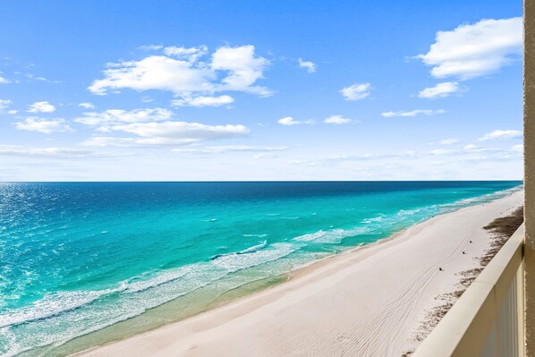 Condo was just perfect. The view was spectacular from the 10th floor balcony. Beach chairs and umbrella service was nice. Communication and check in was fast and easy. Beds were comfortable and condo was exceptionally clean. Elevators were fast. Location is convenient to restaurants like Thomas donut, fresh steamer,and McGuire Irish pub. Sunsets and sunrise beach walks were great and shelling early in the morning. Loved our stay and would come back again to this unit.