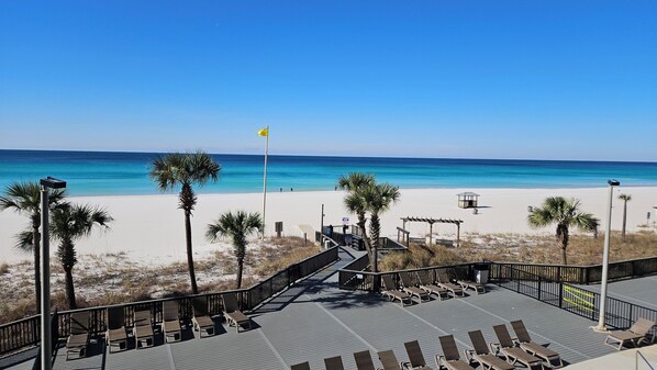 There are three pools with one being heated in the winter. There is a fitness center, pickleball/tennis courts, shuffleboard, volleyball on the beach and, of course, the sugar white sandy beach. The beach is only steps away from the condo. Not feeling beachy? Relax on your private balcony and just enjoy the view.