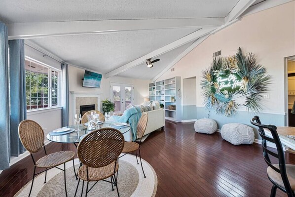 Unwind in this coastal haven where you can soak up sunsets on the deck or gather around a crackling fire pit.