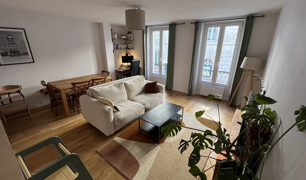 ## Logement Welcome to our cozy apartment located in a quiet street of the 17th arrondissement of Paris. This crossing accommodation is bathed in light throughout the day, with a beautiful spacious living room and a bedroom on courtyard, ideal for peaceful nights.
