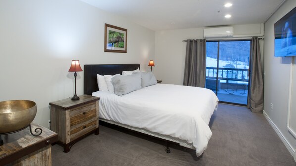 This 1 bedroom, 2 bath ski-in/ski-out condo is about as close as you can get to a ski lift at Park City Mountain and looks right over Homerun and the ski school area. With a Queen Murphy bed in the living room, this unit converts to a very comfortable 2 bedroom space at night.