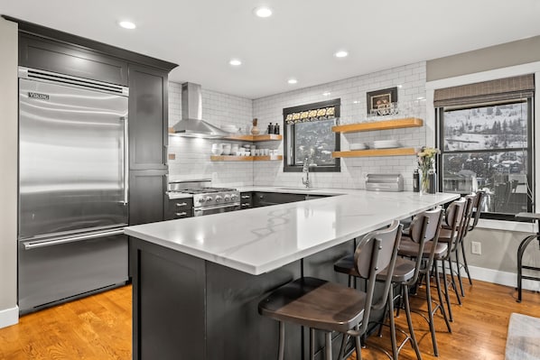 Fridge, microwave, oven, stovetop - Walk to Main St - Luxurious Family Home, 3 BR, Amazing Deck with Private Hot Tub and Downtown Views. (Park City)