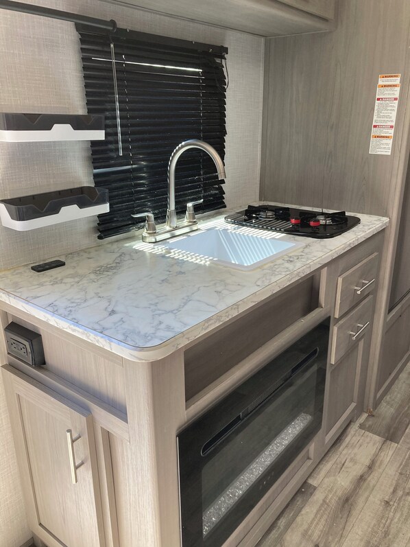 Discover this cozy camper that sleeps 4 in Pawleys Island. Nestled in a peaceful setting, this recreational vehicle offers an excellent getaway for guests. With modern amenities like WiFi, AC, and heating, your stay will be comfortable and convenient. The cozy bedroom provides a peaceful retreat after a day of exploring. The bathroom is well-equipped for your needs. Experience what Pawleys Island has to offer with a stay at our recreational vehicle. Whether you're seeking relaxation or adventure, this charming property is the perfect base for your vacation. Kayaks available for use Beach chairs Outdoor shower