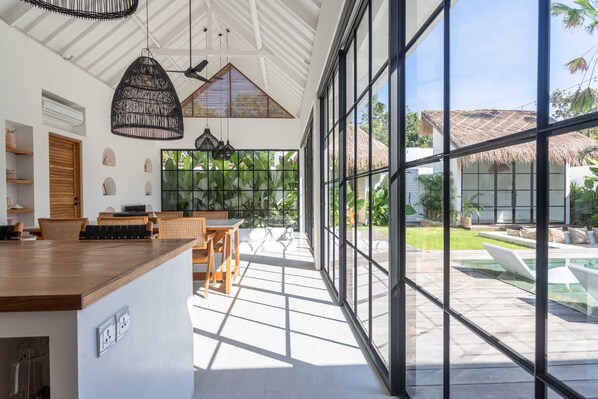 Cleaning is available every day except on Sundays. Gardeners and pool staff come to the property three times per week. Canggu is an extremely safe area but night security is provided every night.