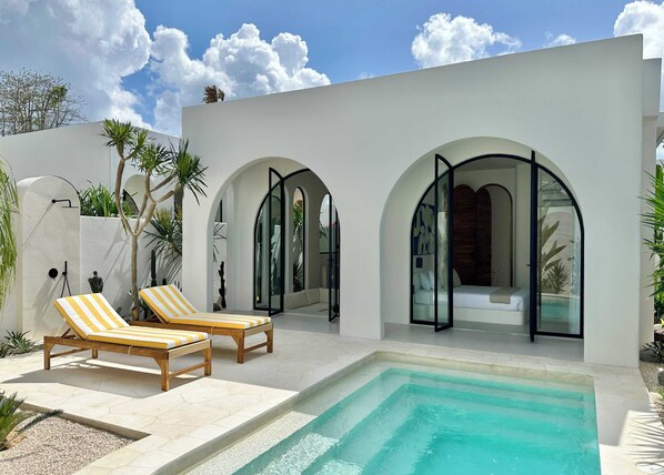 Summary: Forget your worries in this spacious and serene space. Enjoy our luxurious one-bedroom villa in the heart of Bingin. This brand-new one-bedroom villa is located on a quiet road in tropical Bingin, Bali. The villa has a private pool, en-suite bathrooms, outdoor shower, super high-speed WIFI, 24-hour concierge, close to the beach, yoga studios, surfing, restaurants, cafes, and bars. Let's connect on Instagram @theyoungvillas