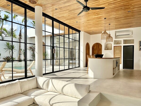 The Space: This two-bedroom villa is part of a complex with a semi-private access road, parking, and security. This is a perfect vacation residence for families or friends with everyday cleaning and butler services. Do you need to rent a bike or order a floating breakfast? Our team will help you with any of your requests to make your vacation hassle-free and memorable.