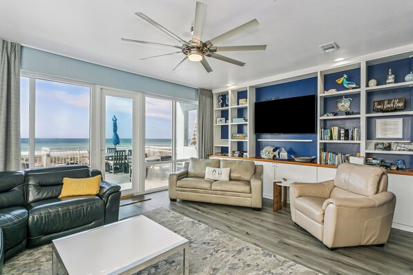 Just steps from the deck, you’ll reach the world-famous white sand beaches. Play cornhole or volleyball right outside the deck door, or enjoy an assortment of provided beach toys, floats, beach chairs, beach balls, and umbrellas. Inside, you’ll find a selection of games and puzzles. Sip morning coffee while watching dolphins, play in the surf, relax at the water’s edge, or grill while watching the sunset.