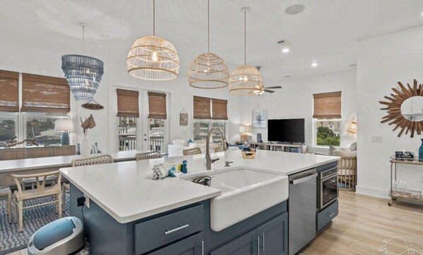 BRISAS DE MAR! Walk to FloraBama! Luxury+Modern+Coastal 5 bedroom home~Sleeps 16 provides amenities, such as laundry facilities and a hot tub. Stay connected with free in-room WiFi.