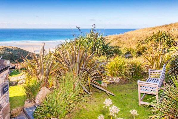 Basking Shark, Cottage in Sennen, Cornwall, England - Sleeps 2 People Over 1 Bedroom – By the beach with Sea Views. Family run Vellandreath Cornish Cottages are pleased to offer this delightful Holiday Cottage in Cornwall by the Sea. "A little piece of heaven..." That’s how the local postman has described Vellandreath Valley, a lovely & hidden corner of Cornwall overlooking the wide sweep of Whitesand bay. In an area of outstanding natural beauty this delightful holiday cottage is set in this privately owned, unspoilt 8-acre valley next to the beach, bordered by a stream & sand dunes offering spectacular panoramic sea views with distant glimpses of the isles of Scilly Converted with flair and imagination this quiet and magical setting is only accessible on foot down the sandy beach path from Sunny Corner Lane, Sennen, Cornwall. This open-plan studio cottage has stunning sea views, exposed granite walls and a slate-style floor with underfloor heating. A perfect place to relax and watch the world go by – and perhaps even a basking shark! Outside is lawned space and a slate patio area which is a great spot for a BBQ. There is a wooden bench to soak up the glorious view and a table and chairs for alfresco dining. A glazed stable door opens to a cosy living space with stunning sea views. Basking Shark has exposed granite walls and a slate-style floor with underfloor heating throughout for a warm and cosy stay whatever the weather. There is a fitted kitchen area looking out to sea with slate work tops and breakfast chairs. A step opens to a double bedroom area with a dressing screen which leads to a compact bathroom with shower attachment, toilet and basin. Basking Shark is simply but attractively furnished and only 150 metres from the beach. • Stable door to a cosy living space with stunning sea views, exposed granite walls and a slate-style floor with underfloor heating throughout for a warm and cosy stay whatever the weather. • Onto a fitted kitchen area looking out to sea. • Step to double bedroom. • All simply but attractively furnished. • Bathroom with shower attachment and toilet. • 150 metres from the beach • An Area of Outstanding Natural Beauty, Vellandreath has No Vehicular Access = No cars = No Traffic = Peace & Quiet. Out front, the beach is seasonally watched over by a team of experience RNLI lifeguards and has a number of award winning surf schools offering surf lessons for all abilities and array of watercraft and wetsuits to hire. The local Pub, Beach Restaurant & Bar, Cafe and shopping facilities are all a handy half mile walk away… Vellandreath Cornish Cottages is a family run business. We have been offering our traditional Cornish Cottages by the beach to generations of families, couples and individuals for their holidays for almost 40 years with many of our guests returning year after year. Vellandreath (also known as Vellan Dreath) is a beautiful, privately owned unspoilt valley designated as an area of outstanding natural beauty by the National trust. Located in by the beach known as Whitesands bay but also known as Sennen beach and Gwynver Beach in Sennen within West Penwith (the Land’s End peninsula) which is the southernmost area of England, and the most picturesque part of Cornwall. It is rich in dramatic beaches, wooded valleys, moorland, rolling farm land, and hidden coves; much of it is designated as Areas of Outstanding Natural Beauty. The far South West is warmed by south westerly breezes from the Azores, and is one of the most unpolluted areas in Britain. It has a special, indefinable quality recognized by locals and visitors alike. Its 144 square miles still supports an active small scale farming and fishing community, with a unique beauty that draws visitors back year after year. The coastline is full of beaches, ranging from safe bathing beaches to secluded coves to wild and rocky places. Some are easily accessible and some less so. Although there are several traditional seaside resorts for family visitors, the area also attracts walkers, naturalists, artists, and anyone seeking a quiet haven, with amenities close by. The sea is crystal clear, jade green, and a comfortable swimming temperature into late autumn. The Land’s End peninsula is in the path of the warm Gulf Stream, and cold weather is rare. Frost and snow are rare, and the climate is ideal for semi-tropical plants, many of which can be seen in Vellandreath’s valley gardens West Penwith also has more ancient sites than any other area of Britain, ranging from stone age to iron age monuments and settlements. These include four stone circles, 90 standing stones, and numerous hill forts, village settlements, quoits, and burial barrows. There are dozens of beaches on the Land’s End peninsula and they are amongst the most unpolluted in Europe. They range from safe, sandy family beaches with life guards to wild and rocky coves. There are many coves where the access is difficult, with wonderfully crowd-free bathing, and others with car parks adjacent to popular resorts. The water is clear and jade-coloured; superb for swimming and surfing, and the beaches are ideal for sun bathing. Beaches vary from sandy to rocky and pebbly, and some have safe and shallow bathing for children, many have nearby shops and cafes catering for family visitors, but it is also easy to find remote and private places. The local inn and the attractive little fishing harbour of Sennen Cove are only 10 minutes’ walk across the vast expanse of the sandy Blue Flag beach, which is perfect for swimming, water sports and famous for surfing. If you are lucky, you may see dolphins, spot the odd seal or basking shark. Rock climbing is popular on the cliffs and headlands. This is superb walking country and great for cycling or mountain biking. Dogs are permitted on the sand dunes and neighbouring Gwenver beach, with restricted access during summer at Whitesands Bay beach. Land’s End is only about a mile furthe