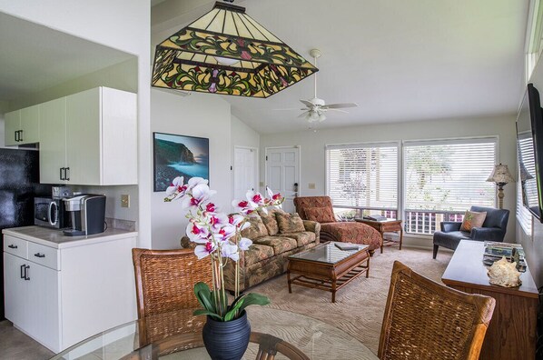 This Tropical Bungalow features Air Conditioning and Tempurpedic King Bed
