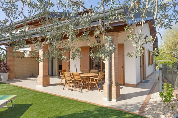 The property is on the edge of the countryside, 1 km from bars, restaurants, pizzerias, bike and scooter rentals, a pharmacy, and a supermarket. A lake with a dog-friendly beach is 1.5 km away, about a 15-minute walk. Other destinations include Peschiera (4 km), Gardaland (5 km), Sirmione (10 km), and Verona (30 km). Public transport links are within walking distance.